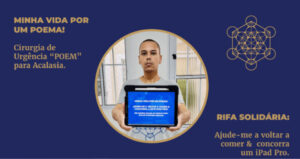 Com fé, coragem e criatividade, Vinícius lançou a campanha “Minha Vida por um Poema”, uma rifa solidária em que cada número custa apenas R$ 25,00. Quem participa concorre a um iPad Pro M2 com acessórios, mas, acima de tudo, contribui para que esse jovem de alma generosa possa continuar escrevendo sua história.